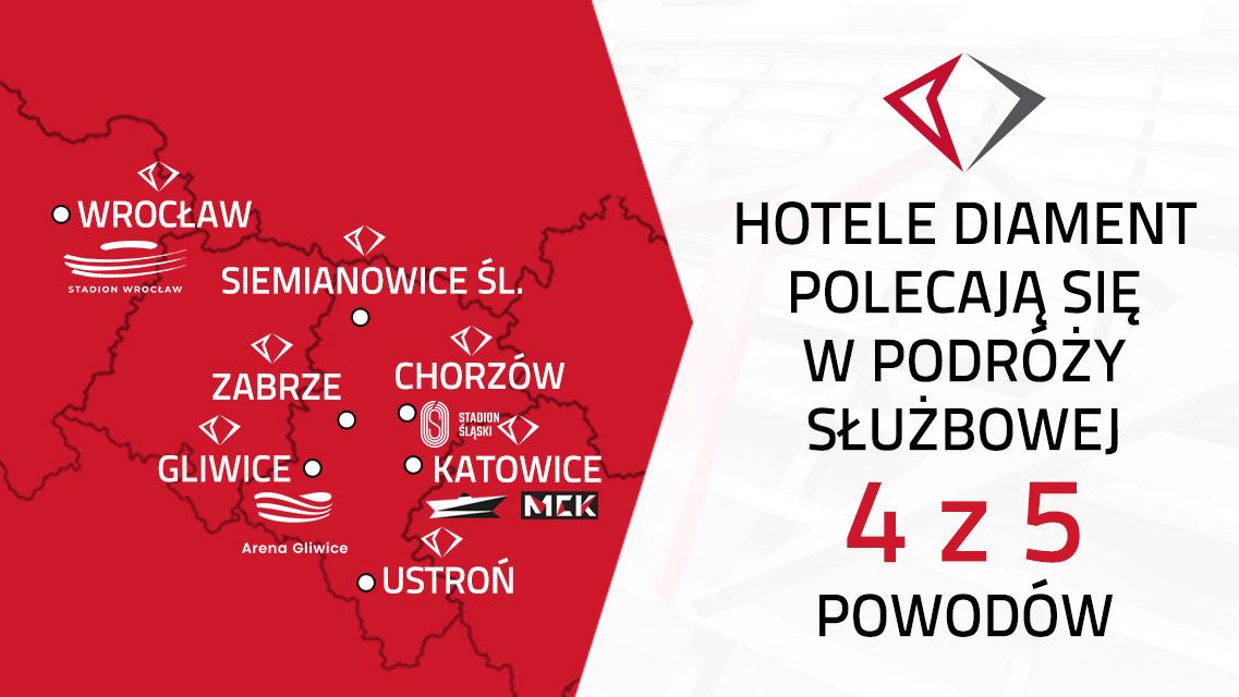 Skuteczne i sprawne rozmieszczenie obiektów – oto niepodważalnie klucz do sukcesu! Nasze hotele, zlokalizowane w różnych miastach, znajdują się w pobliżu dworców i przystanków, więc nadadzą się idealnie dla osób podróżujących środkami komunikacji miejskiej. Wybieracie się Państwo do nas samochodem? Świetnie! Hotele Diament są również usytuowane obszarach z ułatwionym dojazdem do autostrady lub drogi ekspresowej. Dzięki czemu płynne przemieszczanie się będzie niezwykle naturalne. Podróż z pobliskich portów lotniczych również nie zajmie długo. Gwarantujemy, że nie napotkają Państwa żadne problemy z dotarciem do celu!