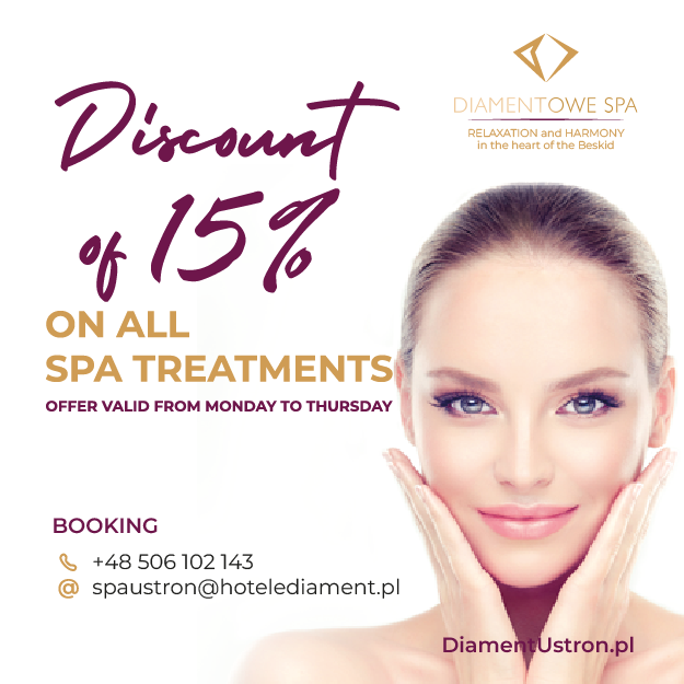 Promotion 30% – 22.10-23.10 for selected Hotels CHECK THE OFFER Golden Polish Autumn in the Mountains – Diament Hotels Ustroń CHECK THE PACKAGE Family Christmas and New Year’s Eve – offer with relaxation and attractions CHECK THE PACKAGE WINTER HOLIDAYS – a rich package of attractions with meals CHECK THE PACKAGE For all those looking for rest, relaxation at a good price. CHECK THE OFFER Special discount of up to 15% – non-refundable offer CHECK THE OFFER Long stay with discount up to 21% – special non-refundable offer CHECK THE OFFER