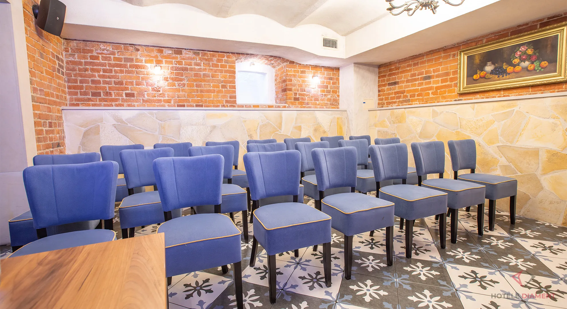 Hotel Diament Plaza Gliwice oferuje doskonałe warunki do organizacji konferencji i szkoleń. Nasze sale, zlokalizowane w zabytkowej piwnicy Restauracji Poziom, mogą pomieścić różne ustawienia krzeseł i stolików, dostosowując się do indywidualnych potrzeb klientów. Sale są w pełni wyposażone w nowoczesny sprzęt, w tym telewizory z możliwością bezprzewodowego podłączenia do komputera, co gwarantuje sprawny przebieg każdej prezentacji.