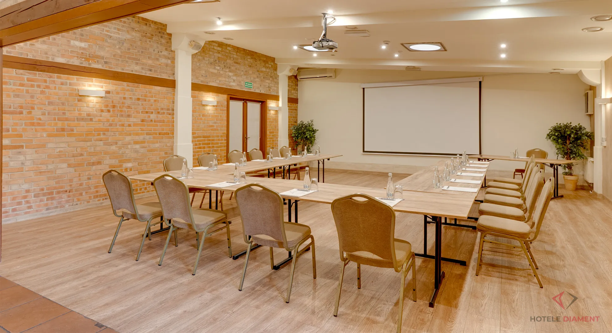 Hotel Diament Vacanza w Siemianowicach Śląskich oferuje trzy klimatyzowane, nowoczesne sale konferencyjne i szkoleniowe o łącznej powierzchni ponad 450 m², co pozwala na organizację wydarzeń o różnej wielkości, od konferencji po bankiety. Dzięki przestronności, eleganckiemu wystrojowi oraz nowoczesnemu zapleczu konferencyjnemu, nasz hotel zapewnia doskonałe warunki do organizacji spotkań biznesowych.