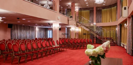 - Przestronne zaplecze konferencyjne – 5 sal konferencyjno-bankietowych o łącznej powierzchni ponad do 450 m², mogące pomieścić do 500 osób