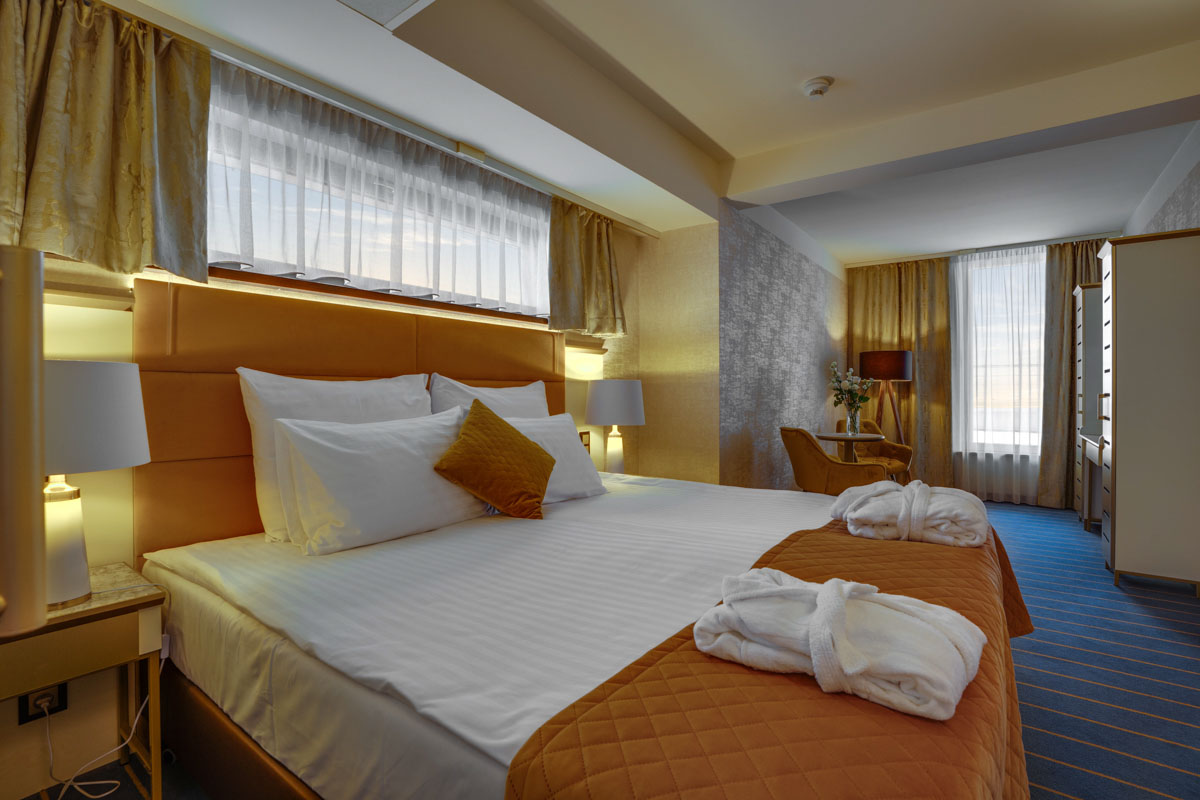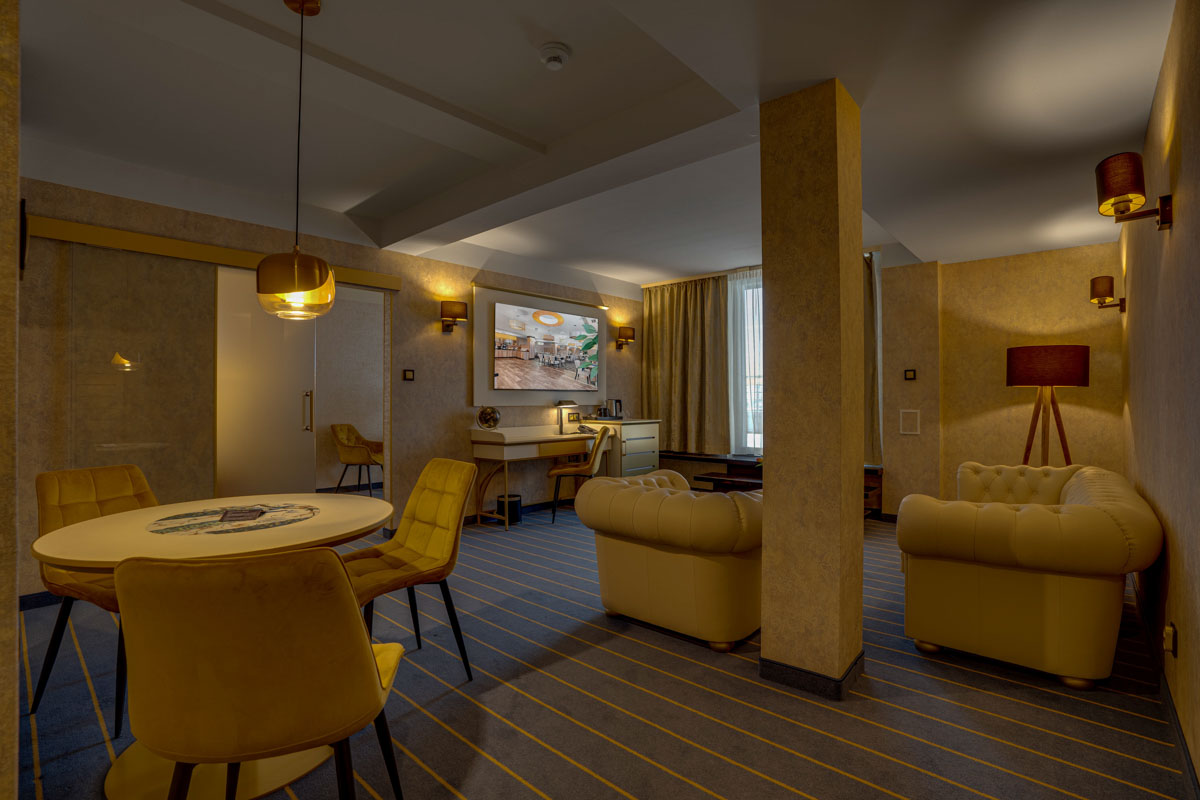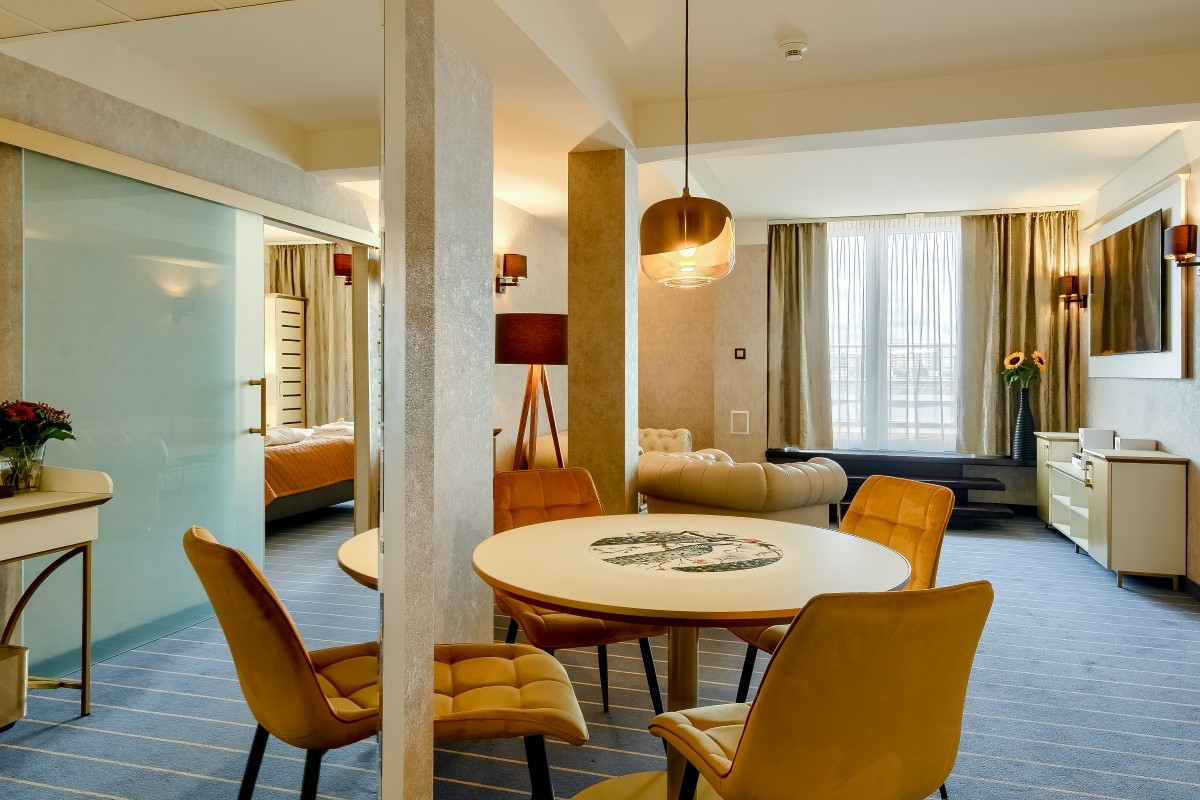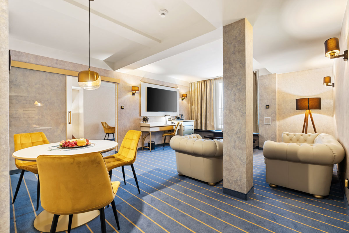 Junior Suite zaprojektowany został z myślą o pełnym komforcie nawet najbardziej wymagających Gości. Zapewnia domową atmosferę i oferuje wszelkie udogodnienia potrzebne w czasie podróży biznesowej lub wizyty prywatnej.