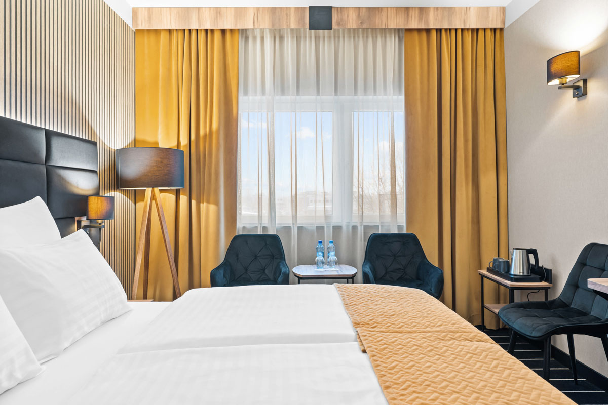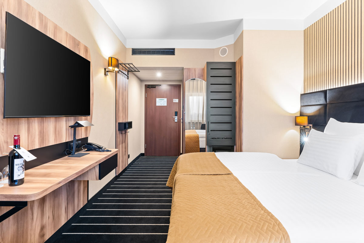 Idealny pokój dla dwóch osób na pobyt we Wrocławiu. Funkcjonalny i nowoczesny zapewni komfort zarówno podczas wyjazdu służbowego, jak i romantycznego pobytu we dwoje. Pokój dostępny jest w opcji zarówno z podwójnym łóżkiem, jak i dwoma pojedyńczymi.