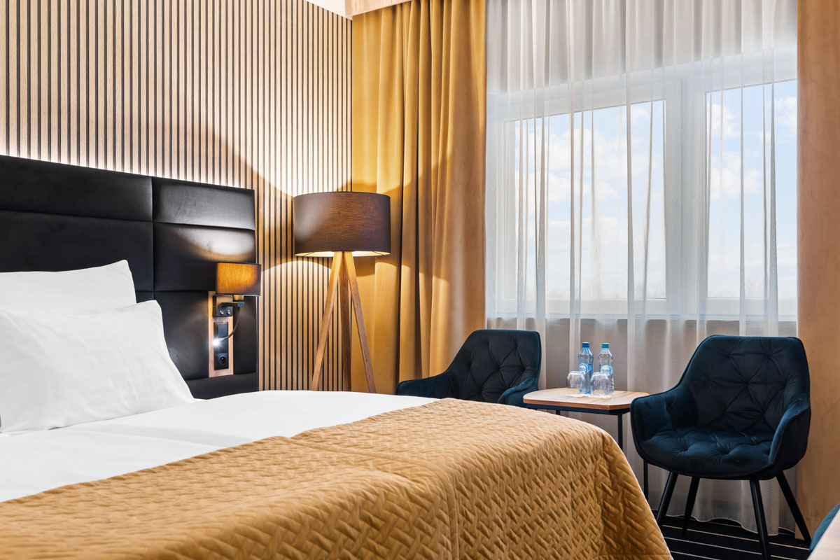Elegancki pokój o podwyższonym standardzie zapewni maksimum komfortu zarówno podczas podróży służbowej, jak i prywatnej. Stylowo urządzony z całą pewnością przypadnie do gustu każdemu, kto ceni sobie niepowtarzalny wygląd wnętrz. Funkcjonalny pokój, w którym w pełni wypoczniesz.