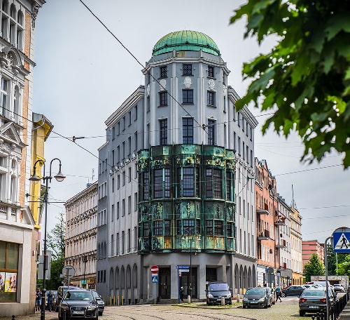W okresie plebiscytów miał tu siedzibę Polski Komitet Plebiscytowy. Budynek po zniszczeniach wojennych prezentuje się niestety znacznie mniej okazale. Warto jednak wejść do wnętrza, aby zobaczyć schody dawnego hallu głównego oraz odrestaurowane witrażowe okna od strony północnej.