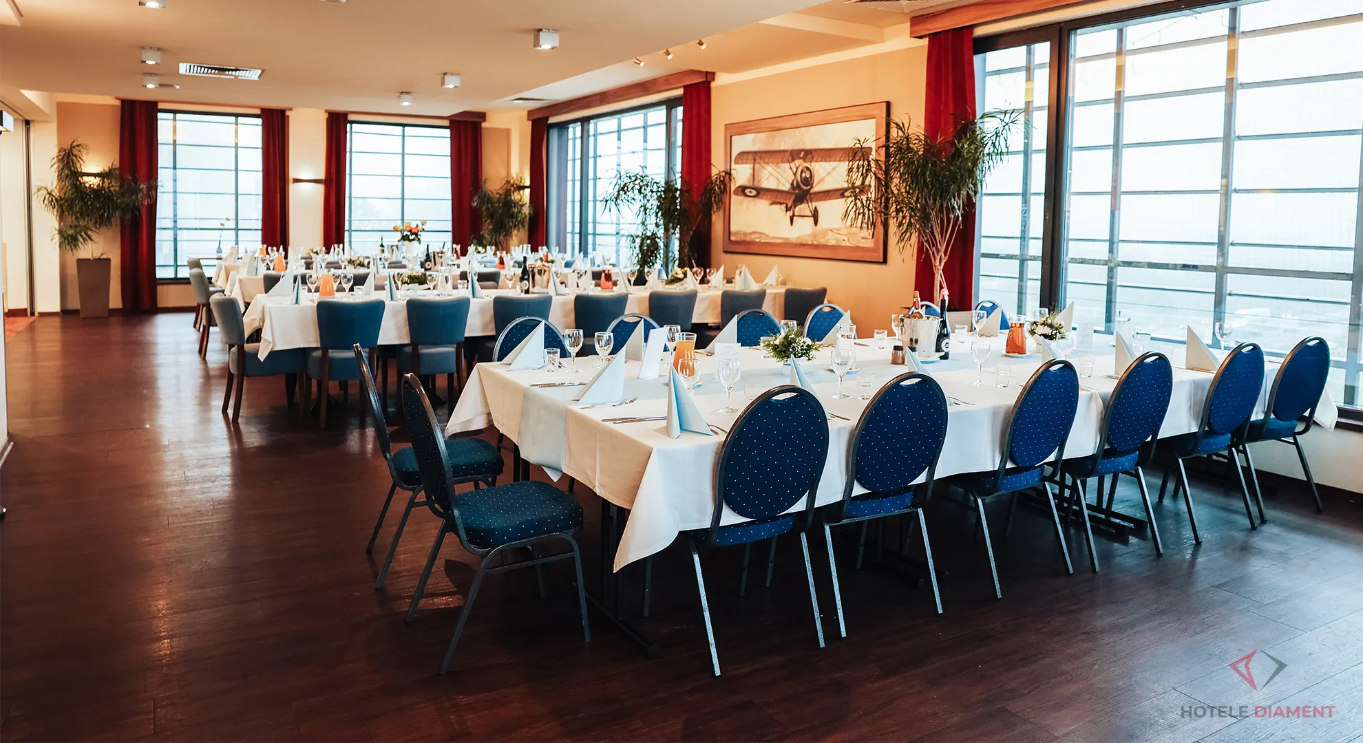 Park Hotel Diament Wrocław**** to bardzo dobre miejsce nie tylko na organizację szkoleń i konferencji, ale również firmowych i prywatnych bankietów. Hotel położony jest zaledwie 10 minut jazdy samochodem od centrum miasta oraz Portu Lotniczego Wrocław, co gwarantuje bezproblemowy dojazd. Gości przyciąga bez wątpienia pyszna kuchnia, sezonowe menu bogate w lekkie, zdrowe dania przygotowane z wyselekcjonowanych polskich produktów. Jasne i przestronne wnętrza sal zapewniają duży komfort. Obok parkingu do dyspozycji Gości jest również garaż podziemny. Oferujemy kompleksową organizację każdego wydarzenia.