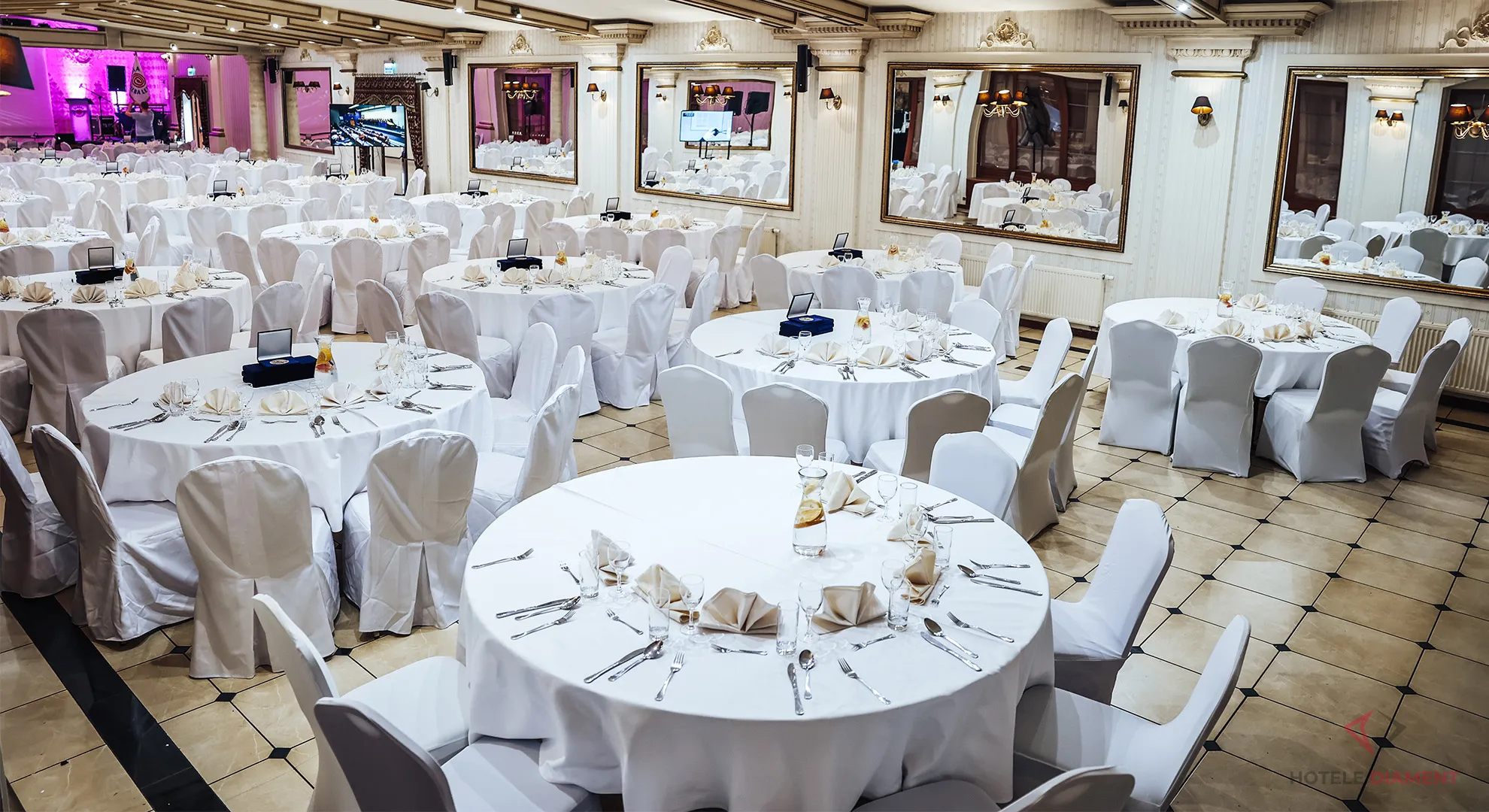 Park Hotel Diament Zabrze**** to obiekt, który składa się z kilku sal bankietowych, na organizację z większą liczbą gości polecamy Salę „Diamentową”. Charakteryzuje ją eleganckie wnętrze i profesjonalne oświetlenie, które dopełnia klimatu. Goście weselni w Hotelu Diament w Zabrzu mogą podziwiać efektowne pokazy kulinarne, które stanowią atrakcję na przyjęciu. Dodatkowym udogodnieniem w tym obiekcie jest taras.